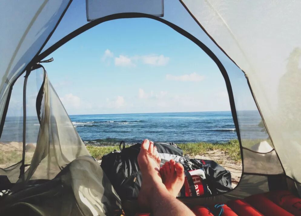 就扎营位置而言,最好选择官方指定的扎营地点以保障安全。如果在草地露营,应避开低洼处或者水塘边,避免积水。如果选择在海边露营,则应该在在历史潮位最高点3米以外扎营,从而保障浪泳及潮水不会冲向帐篷。